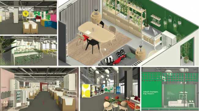 同店では既存店同様、「デモクラティックデザイン」と呼ばれる、①優れたデザイン、②機能性、③品質、④サステナビリティ、⑤低価格の5つの要素を考慮して開発する。主な取り扱い商品はホームファニッシング製品で約9500点を扱う。売場では、実際に商品を手に取って試すことができ、家での暮らしをイメージしたレイアウトやアイデアを紹介する。