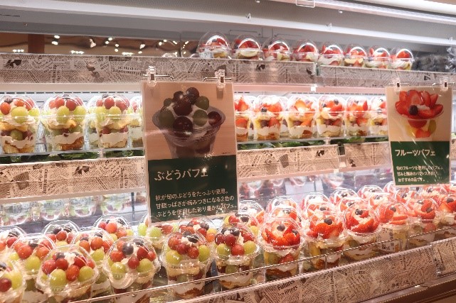 青果コーナーは、旬の果物を揃え季節感を演出する。旬の果物を使ったパフェやカットパイン、焼き芋などのベイシア名物品を品揃えする。また、地元野菜を強化して、月1回程度マルシェを実施する。
