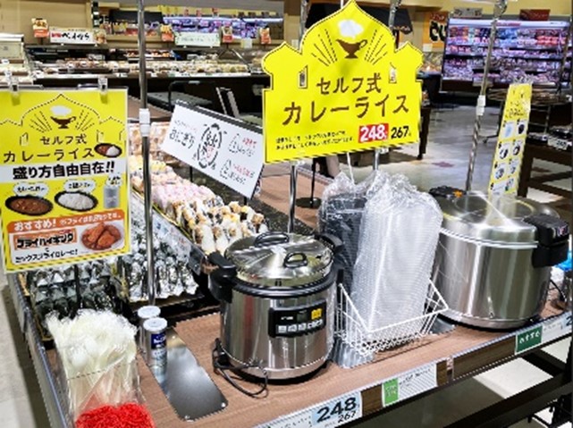 一般食品コーナーでは、ファミリー層が多い地域特性からまとめ買いニーズに応えた飲料・ラーメン売場を強化する。日配品コーナーでは、メーカー勤務のファミリー層や高齢者世帯が多い地域特性を考慮して、簡便・時短・即食ニーズに対応した商品を充実させる。またコスパの良い大容量商品でまとめ買いニーズに応える。地元のうどんや焼売など地域商材もラインアップする。フローズンコーナーでは弁当惣菜・おかず・大容量商品を集合展開させ、さまざまなシーンを想定した商品提案を行っていく。