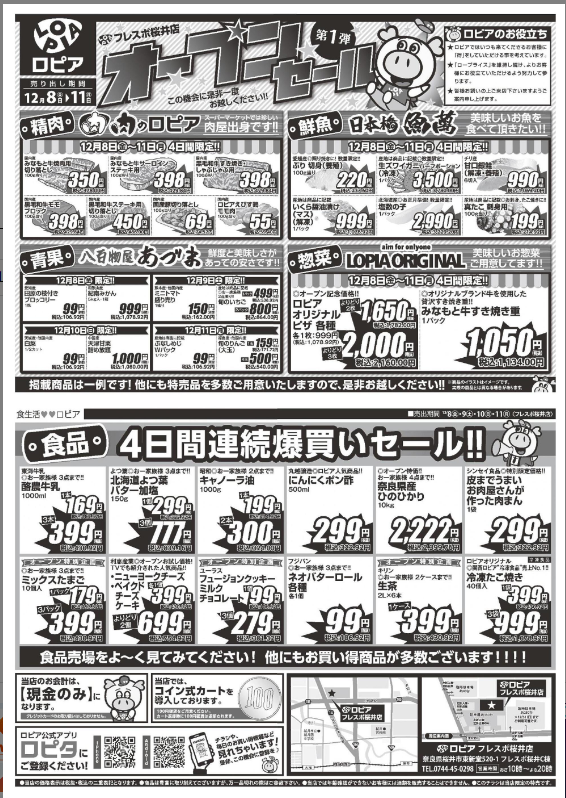 12月5日(火)に神奈川県港南台に「ロピア 港南台バーズ店」を、12月8日(金)に奈良県桜井市に「ロピアフレスポ 桜井店」を開設。