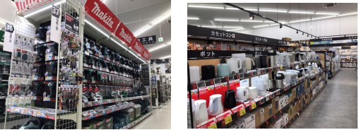 新市店の売場では建築資材・農業資材などの業務用品揃えを強化する。住居関連ではインテリア・収納、日用品、ペット用品など季節用品や生活必需品を揃える。また、「納得家電」コーナーでは冷蔵庫やテレビなどの大型家電を揃える。