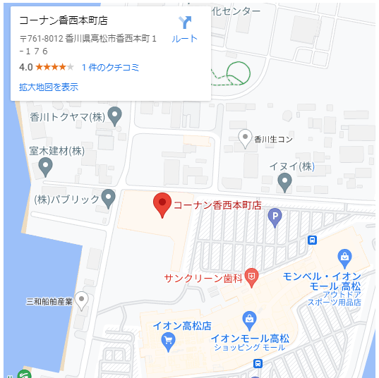 流通スーパーニュース > 店舗 > コーナンnews|香川県12店目のコーナン香西本町店(高松市)12/20開店 コーナンnews|香川県12店目のコーナン香西本町店(高松市)12/20開店 店舗 / 2023年12月13日 ツイート コーナン商事(株)(大阪市淀川区、疋田直太郎社長)は12月20日(水)、香川県高松市に「ホームセンターコーナン香西本町店」をオープンする。香川県内では12店舗目となる。 ■ホームセンターコーナン香西本町(こうざいほんちょう)店 所在地/ 香川県高松市香西本町1番地176 ツイート