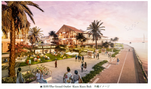 「(仮称) The Grand Outlet -Kura Kura Bali」は、インドネシアの著名な観光地でもあるバリ島、バリ・ングラ・ライ国際空港から車で約15分のスランガン島内の複合型リゾート開発エリア「クラクラ・バリ」内に位置する。このエリアは観光分野での経済特区エリアとして承認され、マリーナ建設とリゾート開発で今後30年間に104.4兆ルピア(約950億円)の投資と約10万人の雇用創出が目指されており、今後のバリの新経済圏を担うエリアとして期待が寄せられている。