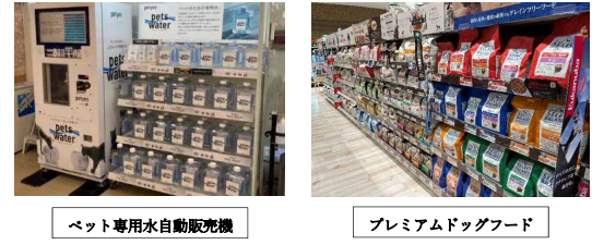 ペットへの健康志向がより一層高まる中、健康面をサポートするフードは、ペットの年齢に合わせたフードの品揃えやオーガニック素材を使用したフードや、アレルギー対応フードなどペットの体調や体質に合わせたフードやサプリを品揃えする。「内からキレイ!」を強調した商品を展開するもので、「ペット専用飲料水の自動販売機」を設置し、人間よりも小さなペットのからだの事を考えて、不純物や有害物質を極限まで取り除き、必要かつ有益なミネラルを添加して飲みやすくした「ペット専用水」を提供する。
