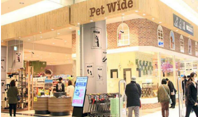 ペットワイドは犬・猫・小動物との出会い場として、トリミング・ホテルなどのサービスも充実させている。店内では犬・猫同伴での買い物ができて、ペットウェア・ペットカート・ハーネス試着もできる。