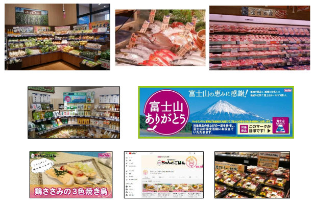 売場の特長の1つは、「じもの」商品の拡充。地場野菜や地域の銘産品などを集めた「じもの」コーナーを充実させ、「地産域消」に繋げていく。また、地域密着経営推進の取組みの一つとして、ありがとうキャンペーンを実施。各地域にゆかりのある商品の販売を通じて、地域活性化を目的に、各キャンペーンの売上の一部を各事業に活用している。「ちゃんとごはん」の取り組みでは、「ちゃんとごはんを食べる」ことを知ってもらう機会として、健康的な食生活の提案や、食事バランスを考慮した弁当や惣菜の紹介などに取り組んでいる。