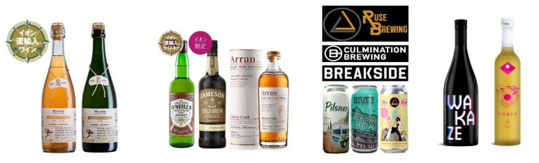 同店で取り扱う商品の一例としては、AB認証、ユーロリーフ認証など、世界のオーガニック認証マークがついた約20種類以上の直輸入ワインを多く取りそろえる。初夏の季節には、ユーロリーフ、デメターの認証を取得した新規直輸入のペットナットが登場する。また輸入ボトラーズウイスキーやイオン限定ウイスキーなどのほか、昨今人気のアイリッシュウイスキー「オニールズ」、イオン限定発売の人気コーヒーリキュール「ジェムソン コールドブリュー」も取り揃える。その他、国内外より厳選した150種類を超えるクラフトビール、日本全国の有名地酒約211SKU・約70銘柄を展開していく。