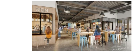 第1期オープン時は、多様な屋台や移動販売ゾーン、イベントを楽しめる芝生広場&ライブステージを展開し、京橋の新しいサードプレイスを目指してきた。第2期として、新たに「フードホール」を新設する。屋内共有スペースに、安い・美味しい飲食店が4店舗出店する。営業時間は、コアタイム11:00~14:00、17:00~20:00で、これ以外の時間帯は各店舗により営業時間が異なる。また販売の新たな実証実験として無人販売機を導入する。