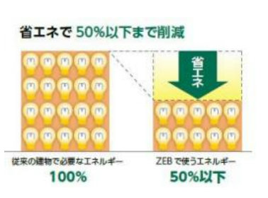 ※「ZEB」とは、先進的な建築設計によるエネルギー負荷の抑制により、室内環境の質を維持しつつ大幅な省エネルギー化を実現した上で、エネルギー自立度を極力高め、年間の一次エネルギー消費量の収支をゼロとすることを目指した建築物のこと。