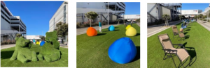 イオンモールは、官民のパブリック空間を一体的に活用する社会実験(Walkable TOYOSUNA)に参画しており、ウォーカブルな(居心地が良く歩きたくなる)まちづくりを推進している。この取り組みの一環として、ペット棟前には、新たな憩い・集いの空間「人工芝エリア」が誕生した。