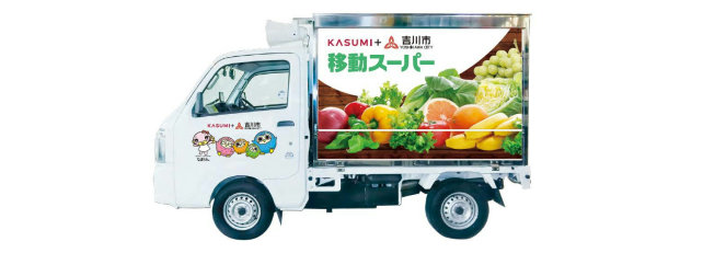 カスミでは、2013年3月18日より茨城県つくば市で移動スーパーの運行を開始した。高萩市の運行を開始することにより、埼玉県13、茨城県23、千葉県16、栃木県6の自治体と連携し、合計車両68台での運行となる。