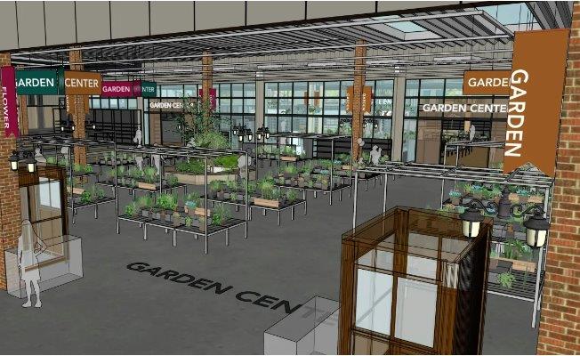 改装では、これまで別館に位置していた園芸館を本館に統合し、ワンフロア化を実現する。また全天候型の売場や最新のレイアウトを導入することで、お客がより快適に買物できる環境を整える。