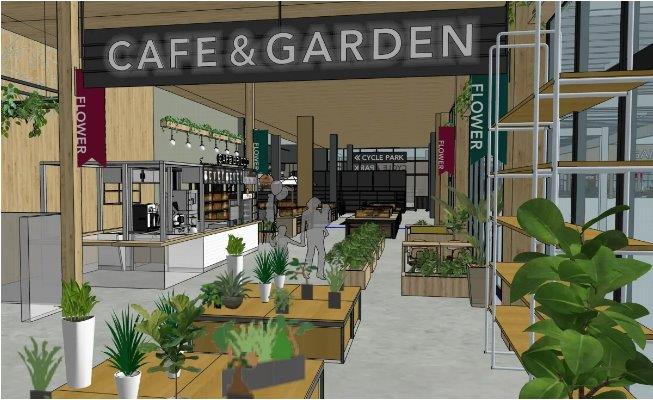 全天候型ガーデンセンターは雨天でも買物ができる売場となる。商品面でも園芸用品や建築資材を大幅に強化する。