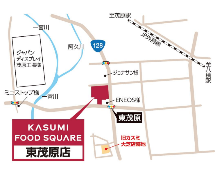フードスクエアカスミ東茂原店の開設で、カスミの店舗数は、千葉県40店舗、茨城県108店舗、埼玉県34店舗、栃木県7店舗、群馬県4店舗、東京都2店舗の合計195店舗となる。