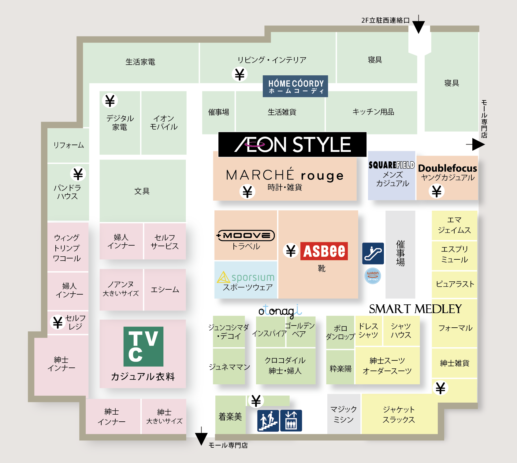 さらに靴専門店「ASBee」や旅行用品「+MOOVE」、ファッション小物の「MARCHE rouge」などの売場も設ける。