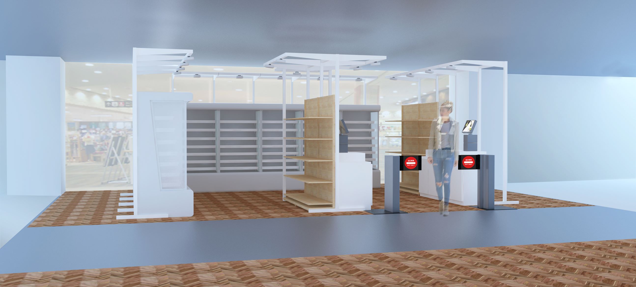 利用方法は入店後欲しい商品を手に取り、出口のディスプレイで購入する商品内容を確認し、決済する。