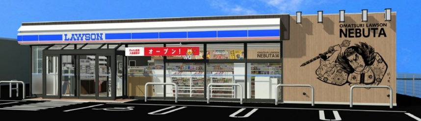 また店外の壁面を、第7代ねぶた名人の竹浪比呂央氏制作のねぶたをイメージしたイラストで装飾し、青森県の魅力も発信している。