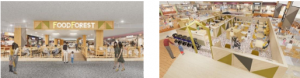 2階のフードコート「フードフォレスト」は、木目調のデザインに刷新するともに、顧客が移動しやすいよう、フードコートエントランスにスロープを新たに設置する。また、小上がり席などファミリー向けの機能も充実させる。