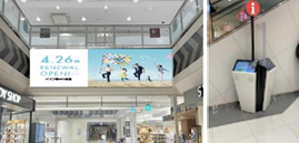 1階、2階の層間部に大型サイネージを設置するほか、館内各所に小型全館案内タッチパネルを増設する。