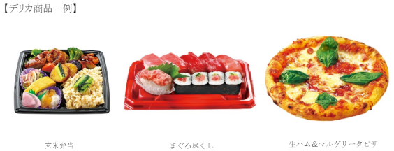寿司は、若者や子どもにも人気の生サーモンを使った握り寿司をメインに品揃えする。店内製造のおむすびは一日を通して種類豊富に、「幸玄米」のおむすびや、ボリューム感ある人気の「肉+DELI」のおむすびなどを販売する。