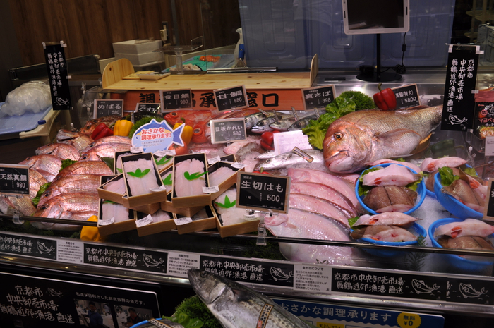 また同店では、地元・京都の商品や品質にこだわった商品を充実させる。青果売場では伝統の「京野菜」、水産の対面調理場では京都市中央卸売市場から届く新鮮な生魚を提供する。