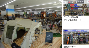 「レジャーフィールド」では、DCMオリジナル商品から有名アウトドアブランドまで豊富なアイテムを取り扱い、初心者から経験者まで利用できるレジャー用品を提案する。広いスペースを活かして多くの商品を展示し、サイズ感や使用感などをその場で確認できるようにした。