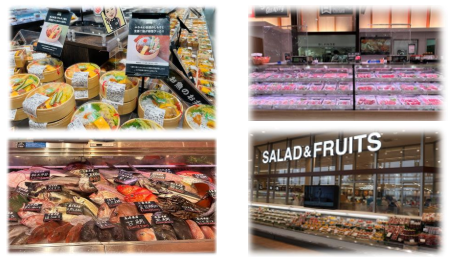 青果売場では、旬の新鮮な野菜や果物に加えて、オーガニック野菜や旬の果実を使ったカットフルーツ・スイーツの品揃えを強化する。鮮魚売場では毎日 40 種以上の品揃えや、対面コーナーで調理・加工サービスを行う。また、生ネタに特化した寿司など、BLΛNDE ならではの品揃えを強化する。精肉売場は、顧客の要望に合わせたオーダーカットや、料理用途に合わせた部位の提案など、店内加工技術を活かした商品を対面販売する。