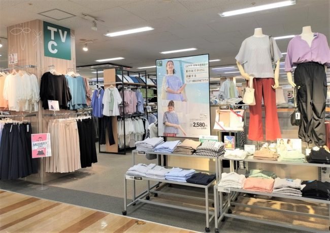 アパレルではデイリーカジュアルを拡大し、イオンリテールの新衣料品SPAブ ランド「TVC」を展開する。エシカルで人気の高いブランド「SELF+SERVICE(セルフサービス)」では、「お出かけ」や「ハレの日」に対応した個性的でエッジの利いたファッション 性の高い商品を中心に展開する「セルフサービス EXPAND」 を新規導入する。また、住関連のプライベートブランド「HÓME CÓORDY(ホームコーディ)」では従来の品種ごとの売場から、使用シーンや用途による売場構成に変更して、コーディネート提案を充実させる。また、テーブルウェア売場では、料理の便利グッズなど、“タイパ”“コスパ”“スぺパ”をかなえる家事ラク商品を拡大する。
