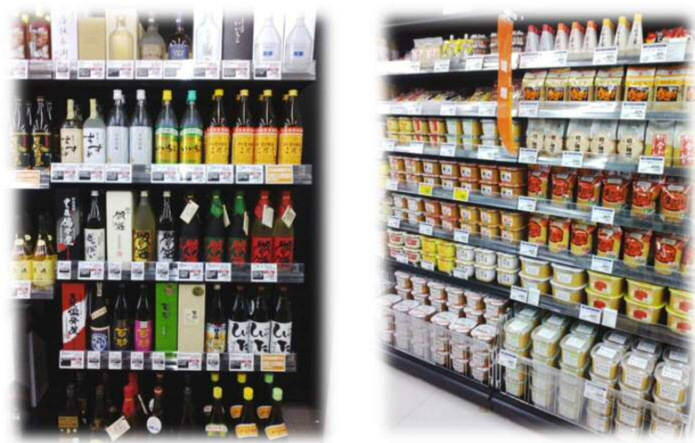惣菜コーナーでは、大分名物とり天や唐揚げなど地元大分の味を最大に品揃えする。日配品コーナーでは、クマガエのこんにゃくや、地場の天ぷら・かまぼこを、加工食品売場では、大分県産の玄米やかしわ飯の素、みそ・茶・菓子・酒など地元商品を取り扱う。