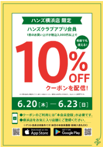 また、リニューアルオープンを記念して、ハンズ横浜店の店頭で利用できる「アプリ会員限定10%オフクーポン」を配信する。6月20日(木)~6月23日(日)の期間、1回の購入金額3000円(税込み、以下同じ)以上で10%割り引きする。ハンズ横浜店をお気に入り登録している本会員が対象。