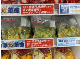 生鮮食品では、農産売場は市場駐在バイヤーが仕入れ、店舗に直送する野菜を集めた「めっちゃば」コーナーを設置し、毎日売り切り販売する。水産売場は「価格」「ちょうどいいサイズ感」で品揃えする。また、「粉もん」の材料に必要な湯だこ、ブラックタイガーえびなどの魚介を揃える。焼き魚で人気の塩さばやさけの切り身、晩酌のお供におすすめのあん肝、なめろうなどのおつまみ惣菜を、1~2人前の食べ切りサイズで販売する。また、脂がのった“とろびんちょう”を使用する「まぐろ三種丼」を毎日30パック限定で販売する。