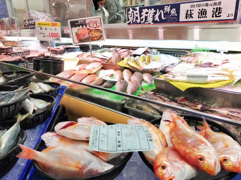 鮮魚売場では、地場鮮魚を中心に対面で毎日提供する。また、地物の鮮魚である「はも」や「真あじ」をコーナー展開し、干物、唐揚などの加工品の展開も実施する。魚惣菜では、地場鮮魚など、店舗で仕入れた魚を店内で加工して焼き魚や煮魚などにして提供する「魚魚炎(ととえん)」を新規導入する。