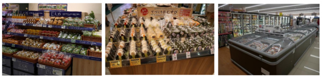 また、鮮魚売場は地元漁港の新鮮な魚介、精肉売場では県内で肥育の安全・安心な豚肉、加工食品では地元工場生産品といったように地元産の品揃えを強化する。デリカ売場では、昼食や夕食の時間帯に合わせてできたて商品をタイムリーに提供するとともに、弁当、サラダ、冷惣菜やお寿司などの品揃えを拡充する。また、じもの食材を使用した商品や小容量など買いやすい量での品揃えを充実する。