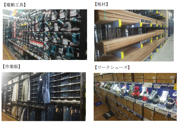 取り扱い商品は建築資材・電動工具・金物・作業衣料・電材など約4万3000アイテム。お客からの要望商品も拡充させていく。