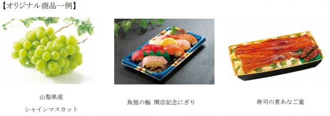 寿司は、定番のまぐろの握り、値頃な巻物・いなり寿司を豊富に品揃えし、人気のおむすびは素材にこだわり、店内握りたてのライブ感あるオープンキッチンでする提供。スチームコンベクションオーブンを使い柔らかく煮あげたあなごを使った出来立ての「煮あなご重」や、健康を意識した玄米使用のおむすび「幸玄米」を品揃えする。