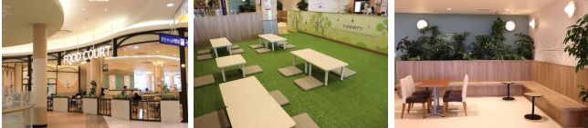 また、フードコートの環境整備を実施した。子ども連れでも安心して利用できる小上がりスペースの新設やコンセント付のカウンターテーブルの導入、カフェベンチを整備した。また、1階共用通路にベンチを増設した。ベンチにはプランターを併設し、館内の緑化に役立てる。来館客や買物客の一時休憩スペースとして整備する。SCの美観向上のため、共用部照明の増設等により施設内の照度向上、外壁などの美観向上を行い、より快適な購買環境を整えた。