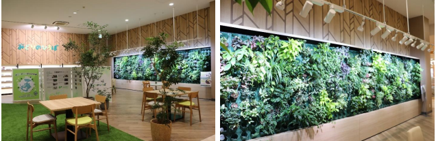 「みどりのひろば」は、地域の顧客とともに緑を育むためのスペースとして、挿し木の無料体験会を定期的に実施し、挿し木をした苗は広場内のスペースでLEDライトを使用して育てる。増えた挿し木は、壁面で生長させ、館内の緑化に活用する予定。