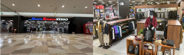 アリオ葛西では新設した。ナイキ をメインブランドとして ジョーダンブランドのアイテムの品揃えを増やし、部活生から社会人競技者、観戦者まであらゆる層のバスケットボールファンが買い物を楽しめる空間・商品を展開する。また、ノースフェイスのショップインショップを新たにオープン。とくにむさし村山店ではパタゴニア、コロンビアブースを新設し、トレッキングアイテムからライフスタイルアイテムまで幅広い品揃えを提案する。入り口にナイキランコーナーをオープン。ランニングシューズ、ランニングウエアやバッグなどコーディネイトを意識した品揃えを提案する。ビギナーでも気軽に選べるラインアップを展開する。