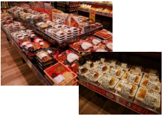 惣菜では店内製造の温惣菜、焼きあげパンなどの商品を提供する。少しずつ、選びやすい小容量惣菜を品揃えする。簡便・時短ニーズに対応するため、中華、パスタ、お弁当、ワンプレートなどの冷凍食品の品揃えを充実させる。また、イートインコーナーを設けて、購入商品をその場で食べることができたり、くつろぎの場として提供する。