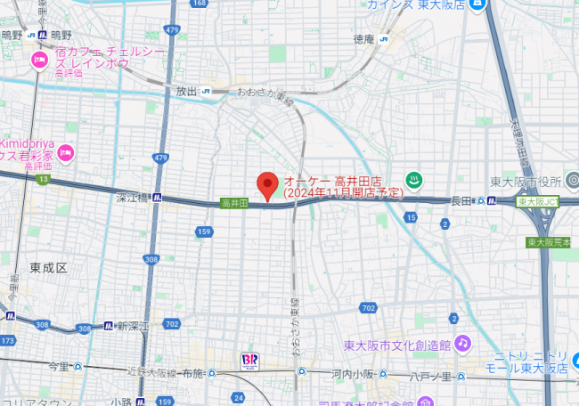 オーケー高井田店は、2022年10月、東大阪市が保有する土地を、オーケー子会社を通じ、入札によって取得した。建物構造は地下1階地上5階となっていて、オーケーは地下1階に出店する。