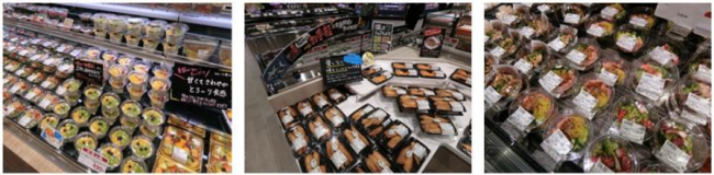 青果、鮮魚、精肉それぞれの売場では、販売している新鮮な素材を使って店内で製造したサラダやカットフルーツ、魚介総菜・肉総菜などを販売する。また、その商品を具材とした弁当や丼もの、サンドイッチなども取り揃える。