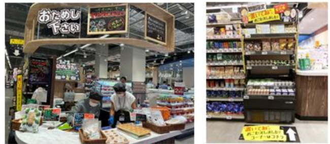 各売場には特徴ある商品をまとめたコーナーを展開する。青果売場の「農家さんから直送」、ナッツ・ドライフルーツ「バイキング」、店内製造の「カットチーズとスモークフィッシュ」コーナーなど。また試食の「おためし下さい」コーナーや、お客の要望で導入した商品などを期間限定で販売する「“置いてね”におこたえしました!」コーナーも設置する。