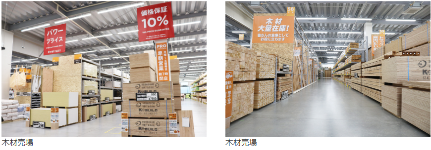 PRO館では、プロの方が倉庫代わりに利用できるよう、資材・建材や工具・金物などの専門的な商品の品揃えと在庫を確保する。各種工具等のレンタルや修理、木材のカットや取り置きサービスなど充実している。また、事業者が仕事前に必要な資材を購入できるように、PRO館は平日、祝日とも午前7時00分から営業する。