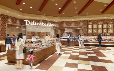 核店舗の直営のスーパーマーケットは約600坪。焼きたてパンやバーガー、おにぎりなどのでき立ての惣菜や、旬の果物を使ったフルーツデザートなど、店内手づくりの商品を品揃えする。また、指定農場から仕入れるオリジナルブランド牛「あじわい牛」をはじめ、対面販売で要望にあわせて調理する鮮魚、各地から厳選した商品や独自に開発した商品を展開する平和堂こだわりブランド「E-WA!」など、平和堂ならではの商品を提供していく。