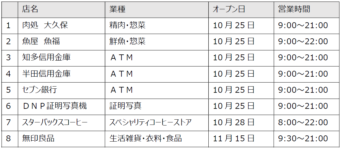 直営のスーパーマーケットを中心に、いずれも知多市初出店となる「無印良品」「スターバックスコーヒー」などの専門店を擁したネイバーフッド(近隣)型の商業施設だ。敷地面積は3637坪、店舗面積は1764坪、営業面積はテナントを含めて1267坪。