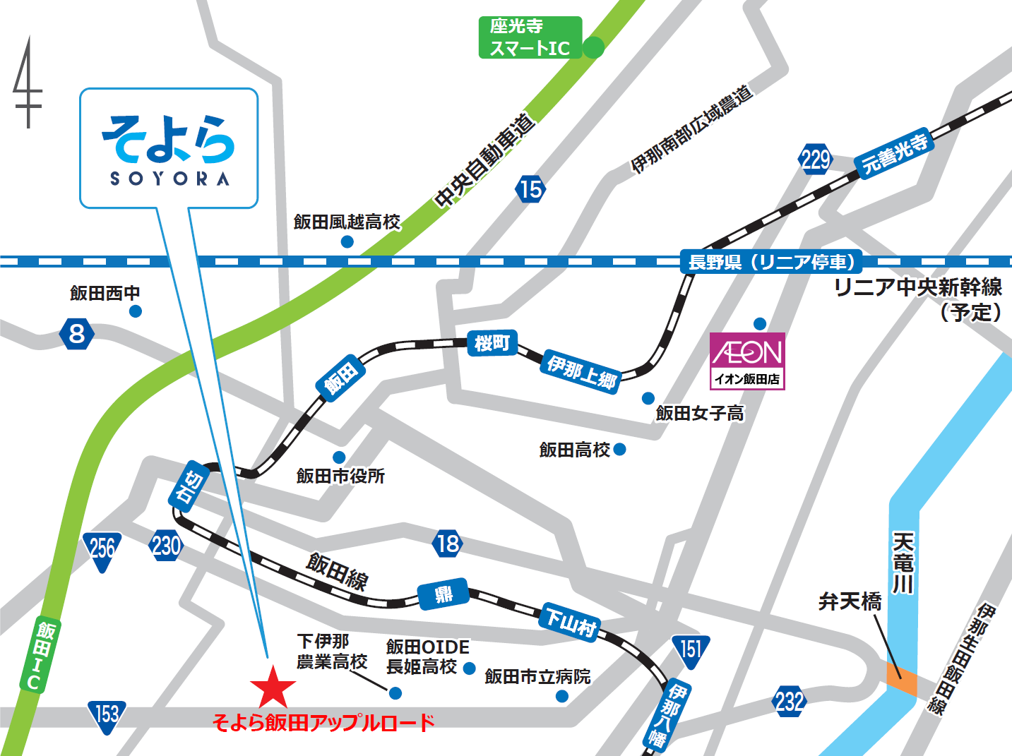 イオンリテールでは飯田市に2店舗を展開している。「イオン飯田アップルロード店」はJR「飯田駅」から南に約3㎞、中央自動車道飯田IC付近に位置する。また飯田駅から北東約4㎦には「イオン飯田店」がある。両店舗とも、子育て世帯などファミリー層の増加がみられる飯田の中心市街地から車10分圏内と交通アクセスがよい。