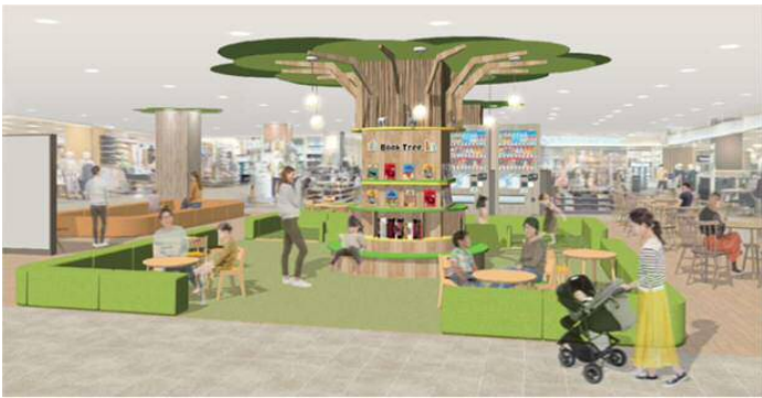 また鹿児島県初のコミュニケーション広場「ふらっとらうんじ」をフロア中央に配置する。