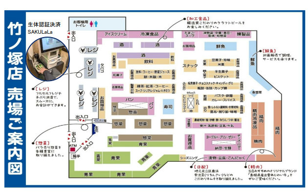 同店は、駅高架下の商業施設「EQUiA竹ノ塚」に立地する特性を活かし、惣菜や弁当、デイリー食品などお客の利便性を追求した「簡便商品」「即食商品」の品揃えを強化して展開する。また、駅の利用者や近隣住民の日常の買物が便利になるよう、顧客の暮らしとニーズに合わせた品揃えやショートタイムショッピングができる店舗を目指す。