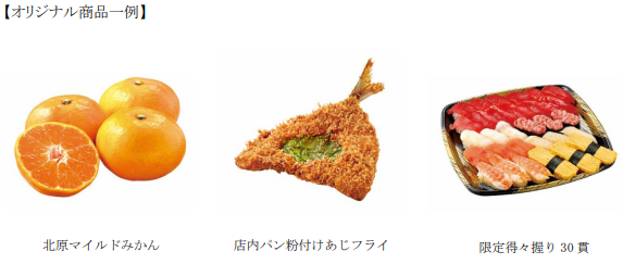 寿司は、「きはだまぐろ」の握り寿司をメインに、値頃な価格で品揃えする。また夕方は限定握りセットを展開する。定番の巻寿司とおむすびは、店内製造ならではのできたての品揃えを強化する。