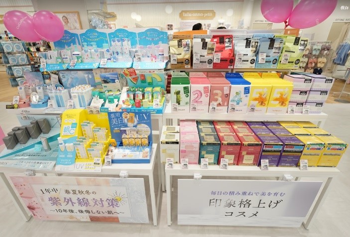 2023年からは顧客ニーズや立地にあわせてこれまでのコスメに加え、アパレルや雑貨など、平和堂が展開するオリジナルショップやアイテムを取り入れたプラスストア店舗の展開も開始。